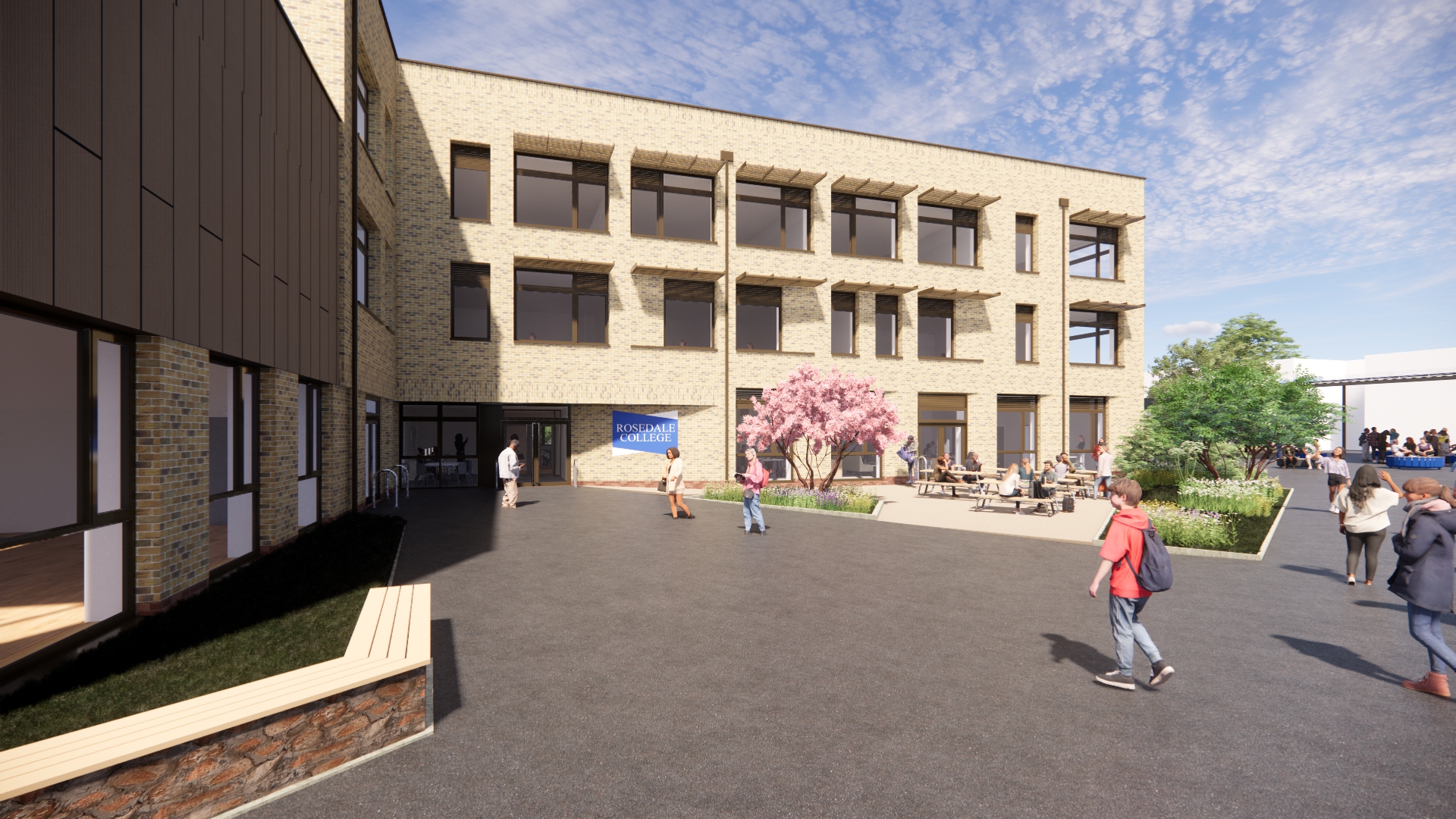Imagery attached: CGIs of Rosedale College, credit Stride Treglown & NVB Landscape